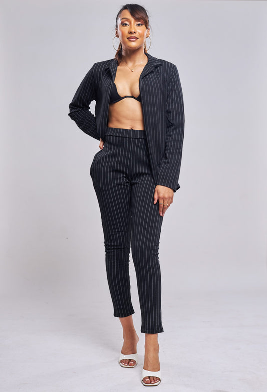 BooHoo - Ensemble de costume à rayures fines - Noir