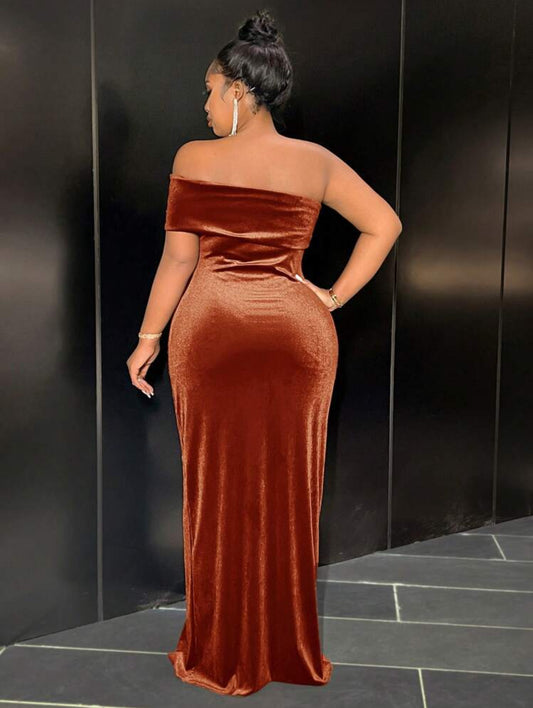 Shein-robe moulante élégante en velours pour femme avec épaule dénudées