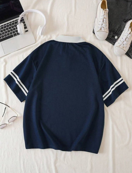Shein - T-shirt graphique avec col contrasté, t-shirts graphiques