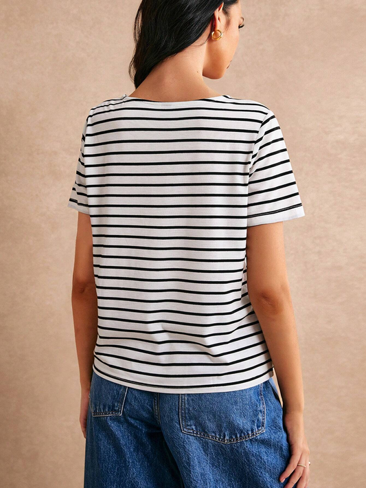 SHEIN - T-shirt graphique rayé et lettré, style casual