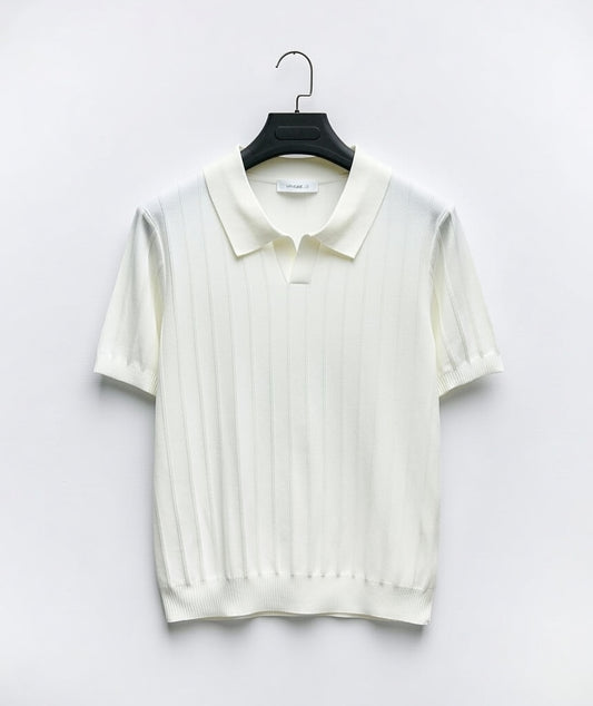 Polo oversize en maille côtelée fine – Crème écru