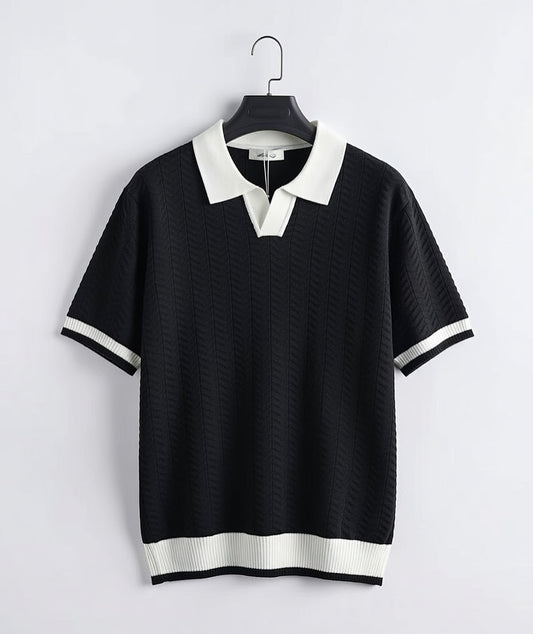 Polo oversize texturé en maille chevron – Noir & Blanc